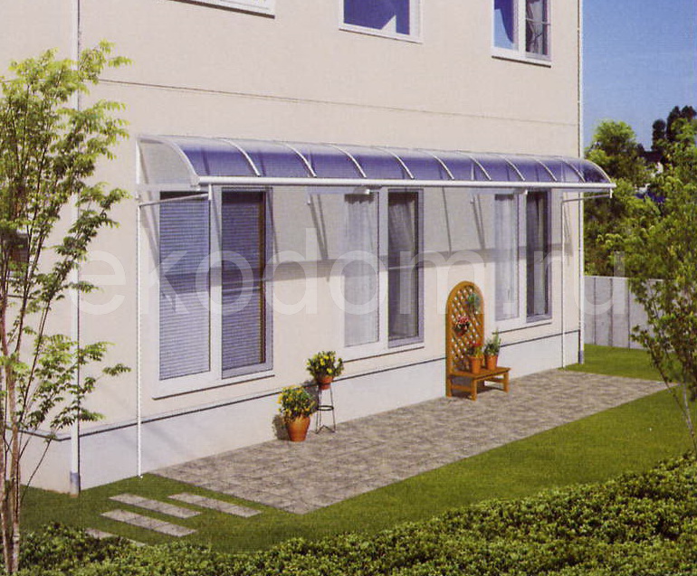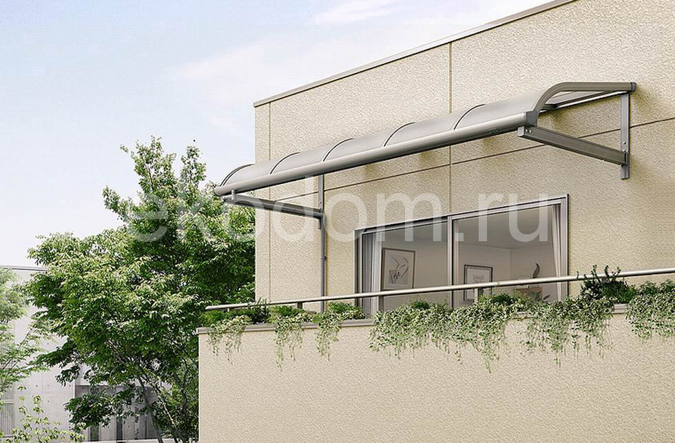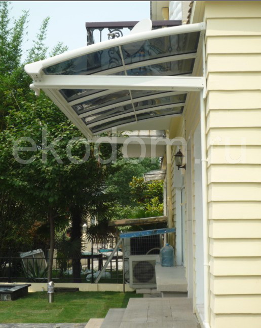 Навесы могут иметь изогнутую и линейную форму. Конструкциии могут быть окрашены белой или коричнеой порошковой краской.