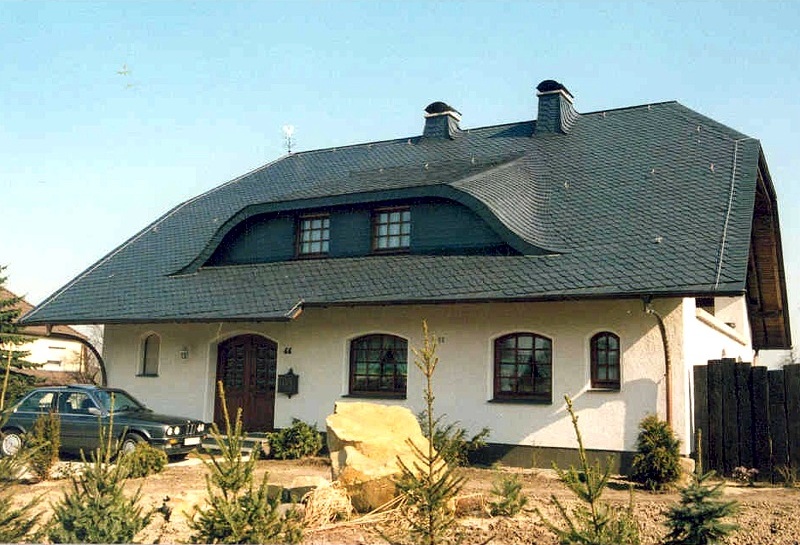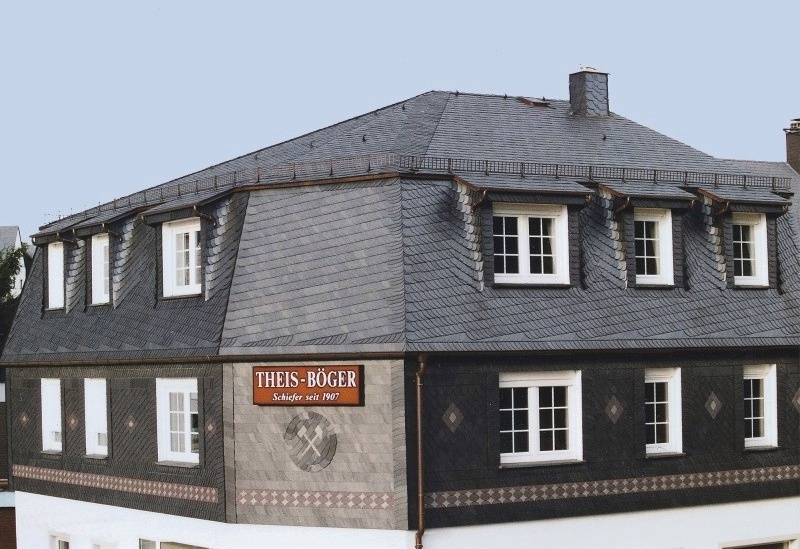 Чешуйчатая укладка Чешуйчатая укладка - это упрощённая форма древнегерманского стиля, при которой используются плитки одинакового размера, уменьшая таким образом объём работы и количество кровельного материала. Специальные форматы для этого вида укладки принесут заказчику дополнительные преимущества, касающиеся цены за материал и затрат времени на кровельные работы.Фирма Theis-Boeger изготовляет плитку для чешуйчатой укладки с нормальным скосом. По заказу возможно изготовление плитки с острым и тупым скосом (см. древнегерманский стиль). Рекомендуется выбирать направление кровельной укладки против направления ветра. Эскизы, размеры, применение