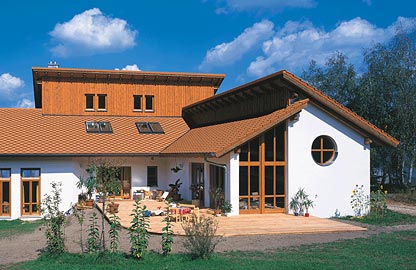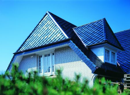 Новая ромбовидная черепица серии «Smaragd» отличается необычной формой, внешним видом и разнообразием. Гладкая поверхность прессованной кровельной черепицы обеспечивает прекрасную защиту от дождя при стандартном наклоне кровли 16°, а также большую свободу укладки, в том числе по форме крыши. Плоская ромбовидная форма и благородная поверхность дают возможность выполнить интересные современные архитектурные акценты на кровле и фасаде.