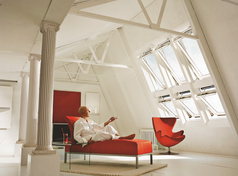 Мансардное окно GGU INTEGRA, выполненное на базе модели GGU, управляется дистанционно. Эту модель по праву называют системой "все включено", достаточно только подвести электричество.