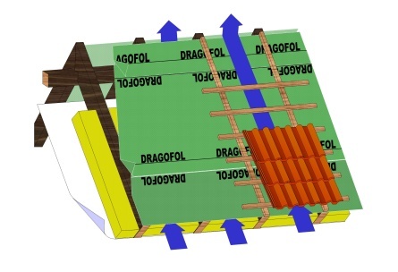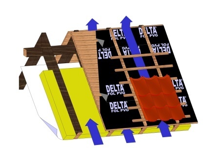 Свойства DELTA®-FOL PVG состоит из трёх слоев: паропроницаемый слой расположен между защитными слоями из нетканого штапельного волокна. Такая структура способствует стабильной диффузионной способности, которой обладают битумосодержащие опалубочные полотна и многие микроперфорированные полимерные пленки. DELTA®-FOL PVG надежно защищает крышу от задуваемого снега, пыли и дождя. Позволяет высохнуть сплошному настилу. Благодаря высокой прочности на продавливание обеспечивает износостойкость в ходе кровельных работ. Может в течение 6 месяцев подвергаться воздействию УФ-излучения в отсутствие кровельного покрытия. Структура плёнки обеспечивает длительную защиту и является довольно легким изоляционным покрытием, имея по сравнению с битумосодержащими опалубочными полотнами вес всего лишь 195 г/м2. Идеально подходит для кровель из мелкоформатных материалов, укладываемых на сплошной настил (натуральный сланец, цементно-волокнистые и асбесто-цементные плитки).
