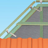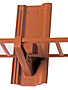 Кронштейн из оцинкованной стали. Служит опорой для конькового/хребтового бруска, на который в свою очередь крепится коньковая черепица. Позволяет удобно и быстро, с хорошей точностью установить брусок коньковой обрешетки. |