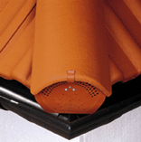 Применяется для красивого оформления торцов конька и хребта. Используется вместе с коньковой черепицей и коньковым кляммером. Красиво оформляет начало хребта и конек, способствует их вентиляции. |